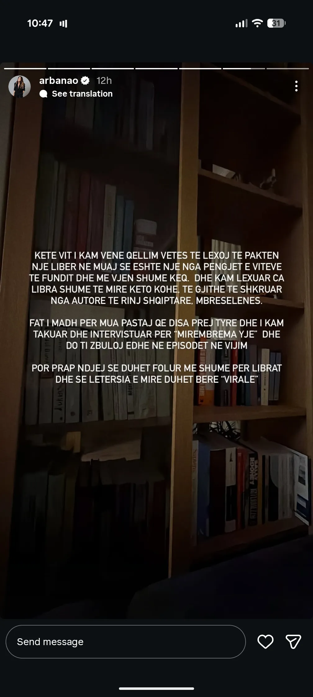 “Ndjej se duhet folur më shumë për librat dhe se letërsia e mirë duhet bërë ‘virale’,” përfundon Arbana.