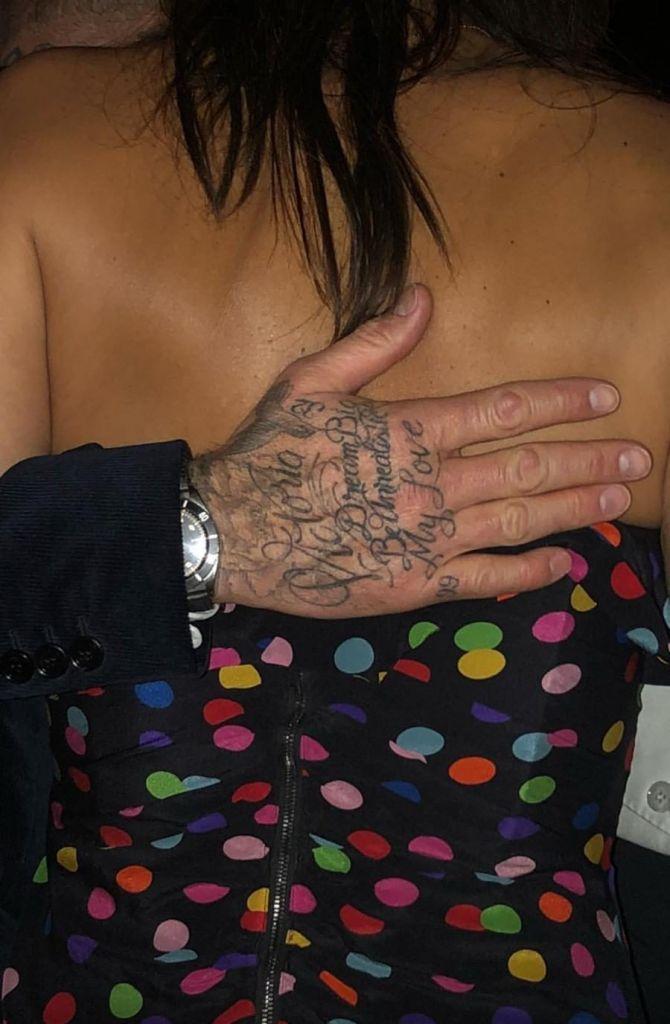 Ish futbollisti Manchester United dhe Real Madridit, gjatë fotos të kapur nga mediat tregon dorën e Beckham, në kurrizin e modeles, teksa mbi dorë shihet qartë emriVctoria që i kujton gruan dhe tregon se tradhëtia në familjen Beckham nuk ekziston.