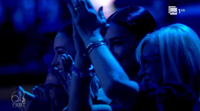 Performanca u prit shumë mirë nga publiku dhe në një moment kamera fokusoi për pak sekonda modelen Adrola Dushi, e shoqëruar me miken e saj, Kristina Baki, që u ngritën në këmbë të entuziazmuara.