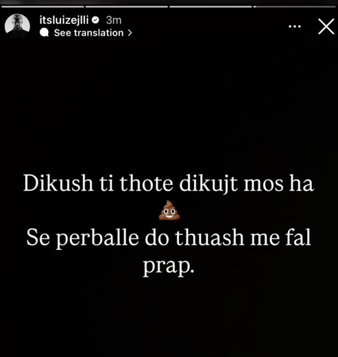 “Dikush ti thojë dikujt mos ha… se përballë do thuash më fal prapë”, shkruan ;uizi në postimin e tij duke i kthyer pergjigje menjehere.