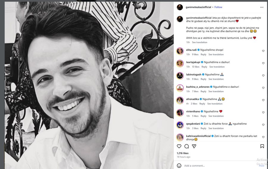 Vetë kjo e fundit përmes një postimi në rrjetet sociale ka dhënë lajmin e trishtë dhe dhimbjen që kjo humbje e papritur e tij ka lënë pas te familja dhe të gjithë njerëzit e zemrës.