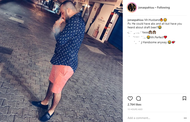 “Zoti bashkëshort. Ai mund të kishte muskuj barku dhe të gjitha, por keni dëgjuar për birrat?”, ka shkruar Jona me humor krahas fotos ku shihet Frenkli me barkun e fryrë.