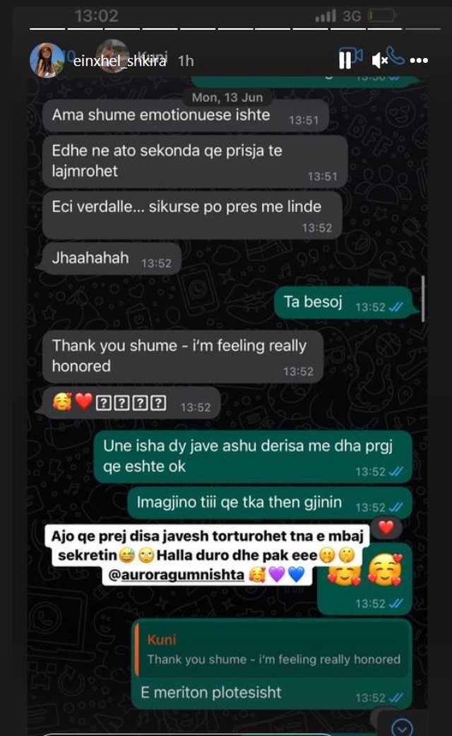 Me postimet që Einxhel Shkira ka bërë para pak minutash në Instagram ka hedhur poshtë lajmet se ajo është në pritje të një vajzë, lajm që u përhap për shkak të një postimi të Monika Lubonjës.