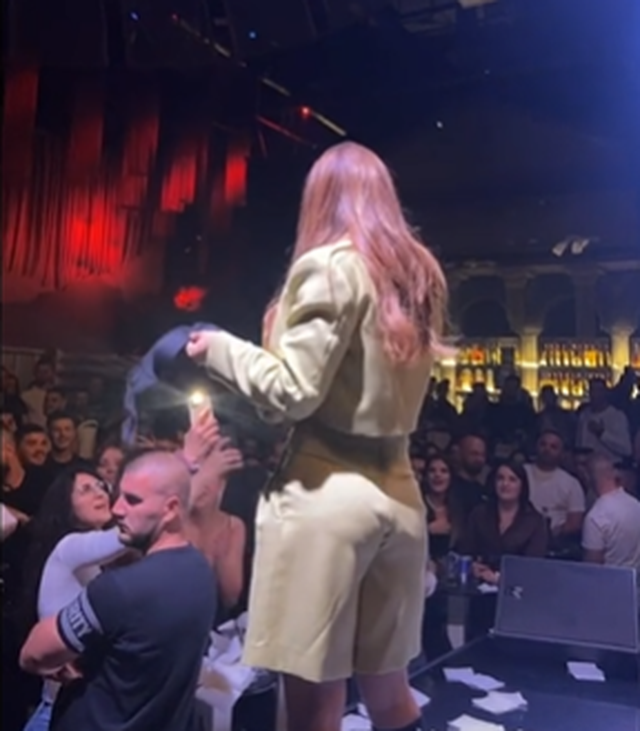 Xhensila ka qenë duke performuar, teksa një fanse i ka hedhur reçipetat në një cep të skenës. Këngëtarja i ka marrë dhe i ka kthyer një përgjigje epike.