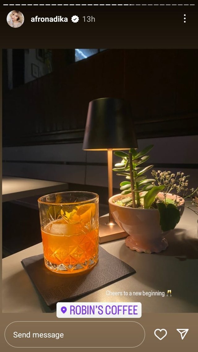 Për herë të parë pas disa vitesh ajo feston si ‘beqare’, të paktën këtë na ka lënë të mendojmë me postimin e saj të fundit në InstaStory. Ajo që modelja i ka uruar vetës është një fillim i ri. “Gëzuar për fillime të reja”, ka shkruar Afrona krahas postimit në Instagram.