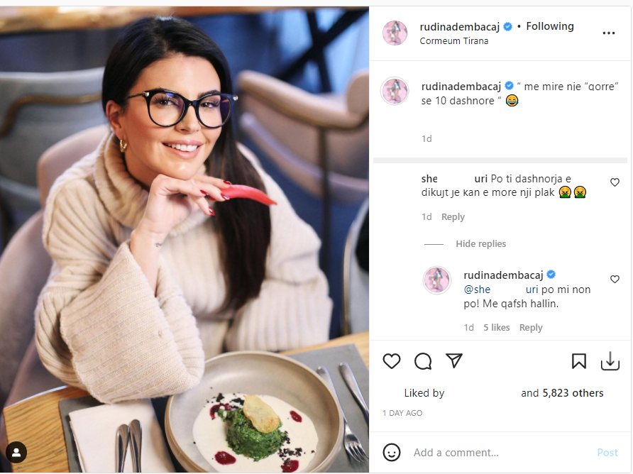 “Po ti dashnorja e dikujt ke qenë dhe more një plak”, i ka shkruar dikush të cilit Rudina i është përgjigjur menjëherë.