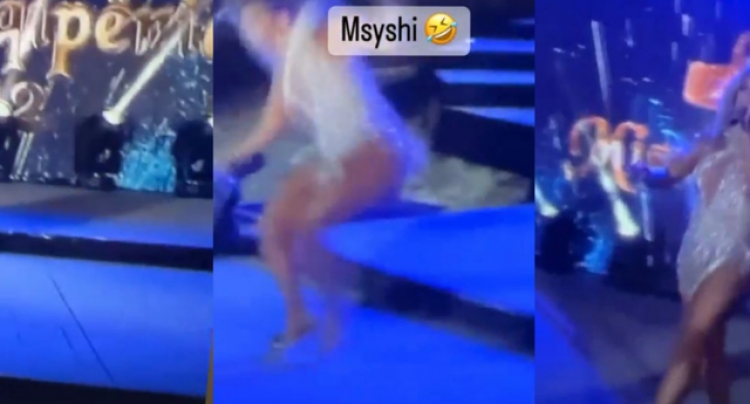 Teksa po përshëndeste të pranishmit, Adelina nuk e vuri re shkallën dhe u rrëzua. Ajo e mori me shumë sportivitet situatën e madje videon e publikoi vetë në rrjete sociale duke shkruar se e kanë marrë mësysh.