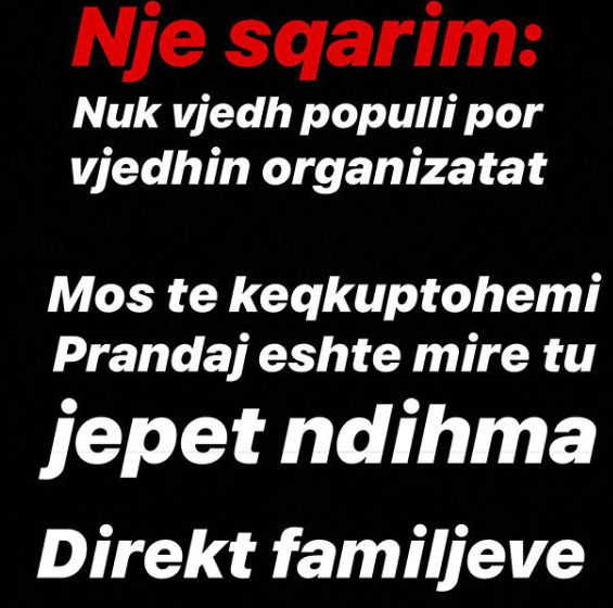 “Një sqarim: Nuk vjedh populli por organizatat. Mos të keqkuptohemi, prandaj është mirë tu jepet ndihma direkt familjeve”, shkruan reperi.