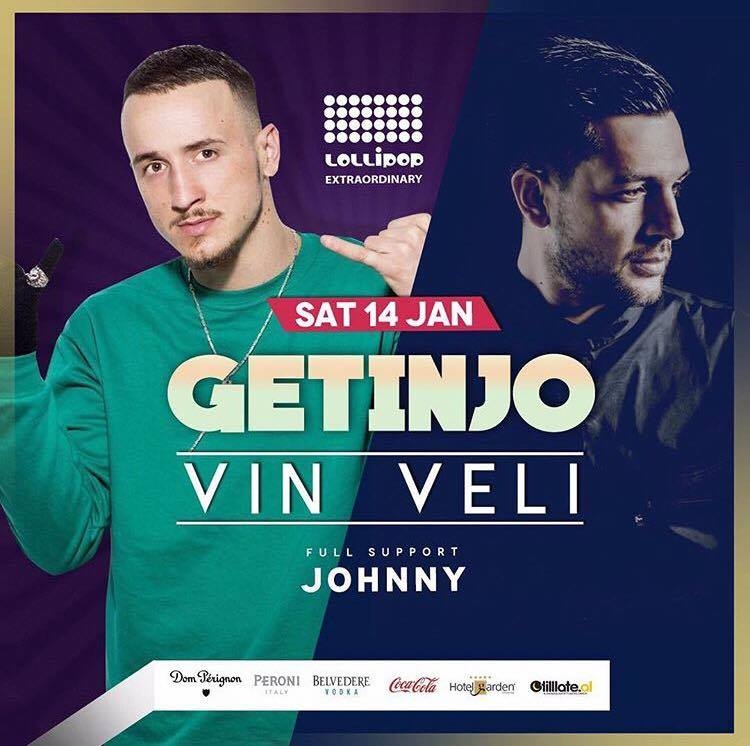 Njëri është një nga reperat e ri më të mirë të vitit, ndërsa tjetri një DJ-t më të dashur shqiptar. Këtë të shtunë Lollipop bën bashkë për kënaqësinë tonë dy artistë si Getinjo dhe Vin Veli. Në fakt tingëllon paksa çuditshëm ky kombinim i repit me tingujt house dhe dance, por ja që jemi mësuar të presim nga Lolli, atë që nuk na e pret mendja. Kush tha që nuk mund t'i kemi të dyja brenda një nate të paparë si kjo!