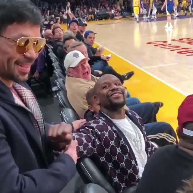 Ndërkohë nga krahu tjetër në të njëjtën ndeshje ishte dhe rivali i hershëm, Manny Pacquiao, me të cilin Floyd ka zhvilluar ndeshjen më fitimprurëse në historinë e boksit.