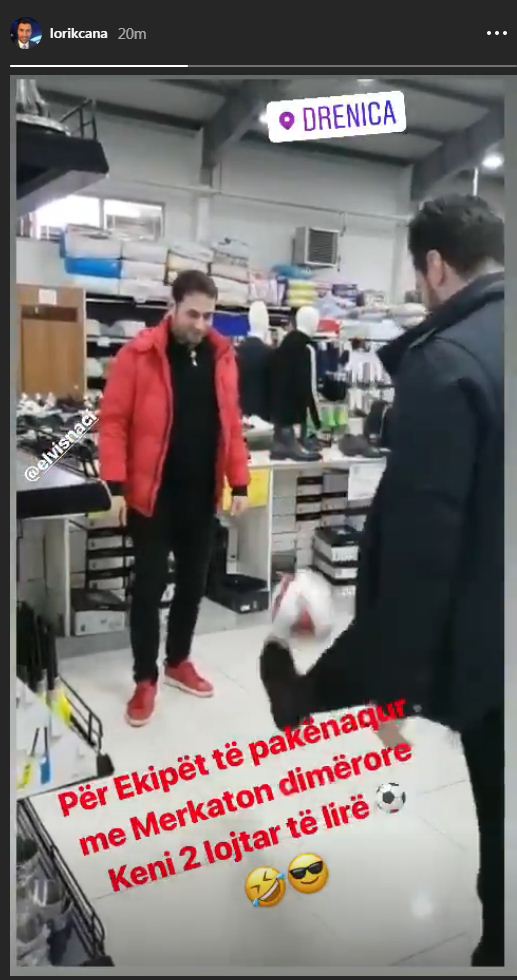 Edhe ky i fundit, një ish-futbollist në rini, shfaqet duke luajtur brenda ambienteve të qendrës tregtare së bashku me Canën, ndërsa ish-kapiteni “Kuq e Zi”, i shton postimit në Instagram edhe mbishkrimin: “Për ekipet e pakënaqura me merkaton dimërore, keni dy lojtarë të lirë”.