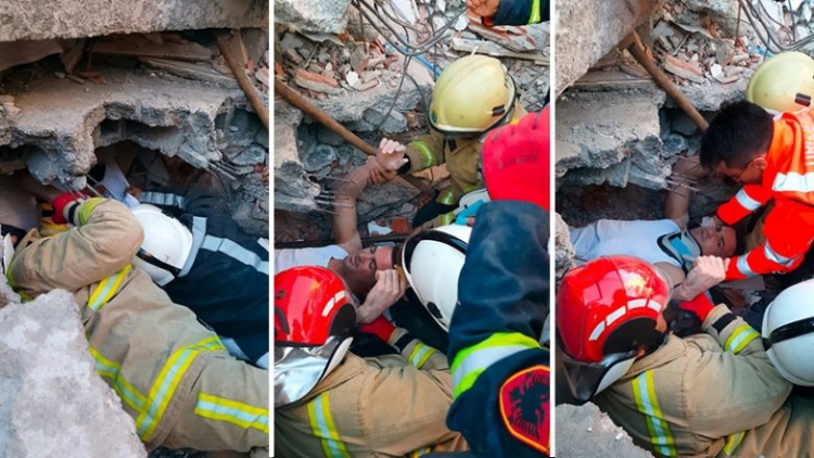 Ndërkohë, pamjet e shpëtimit të 33 vjeçarit Adriatik Bode, i cili mbeti i bllokuar në rrënojat e hotel “Mira Mare” në Durrës janë postuar në facebook nga zjarrfikësit e Mallakastrës.