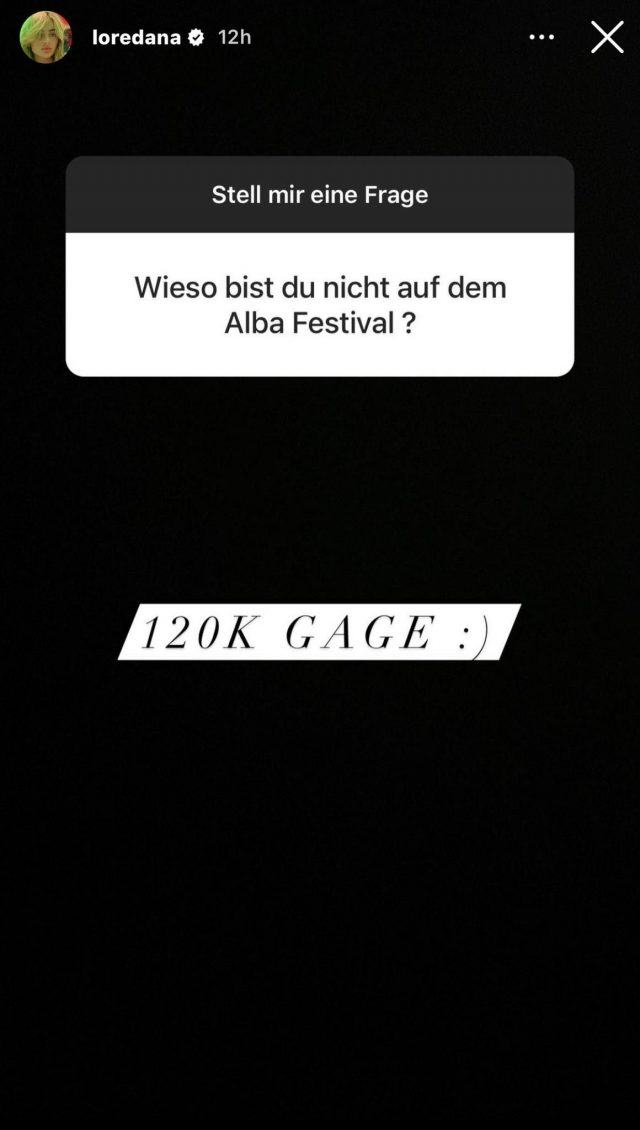 “Përse nuk je në Festivalin Alba?”, ka qenë pyetja që i bëri një nga ndjeksit në Instagram. Loredana nuk nguroi t’i përgjigjej shkurt, se kërkoi të paguhej 120 mijë euro.