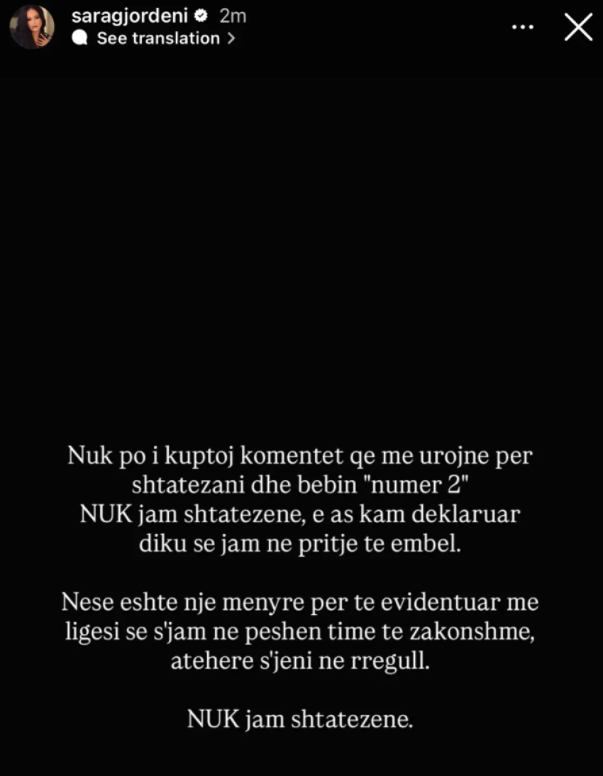 Në fund të reagimit të saj, Sara e mbyll sqarimin me të njëjtin mesazh të prerë: “NUK jam shtatzënë,” duke kërkuar indirekt që komentet dhe insinuatat të ndalojnë njëherë e mirë.