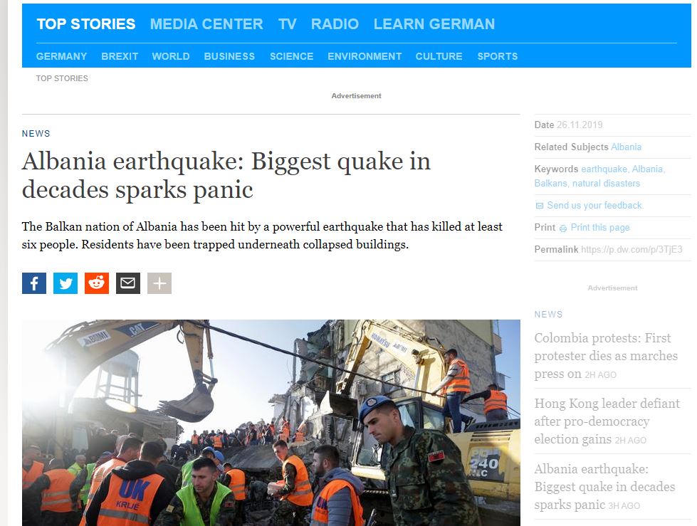 Për tërmetin më të fuqishëm të 30 viteve në vendin tonë kanë shkruar edhe mediat botërore.