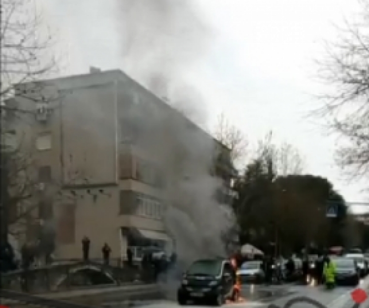 Tiranë, automjeti tip “Smart” merr flakë në trafik në zonën e Urës së Tabakëve, nuk ka të lënduar