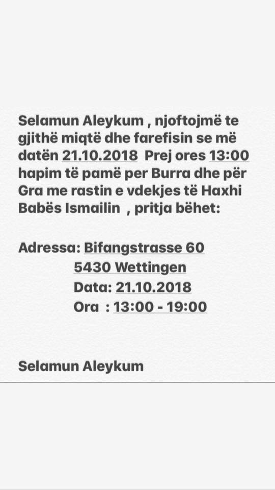 Edhe pse ndërroi jetë më 30 shtator, Naser Aliji ka njoftuar në rrjetet sociale për ditën kur fillojnë vizitat në shtëpinë e tij.