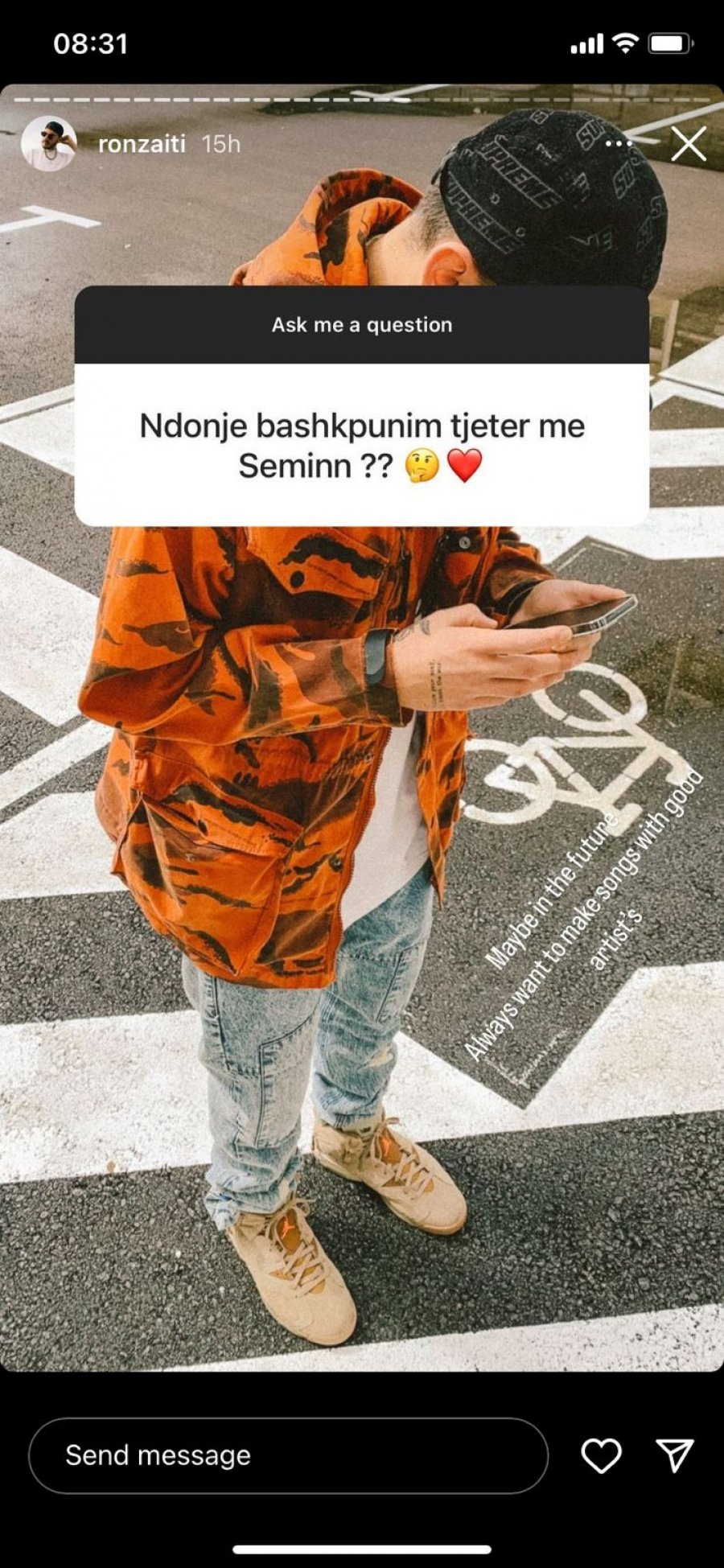 Këngëtarët Semi Jaupaj dhe Ron Zaiti u përfolën për një kohë të gjatë për një lidhje me njëri-tjetrin, që pas bashkëpunimit që sollën. Mirëpo së fundmi Ron Zaiti ka zhvilluar një ‘ask me a question’ në Instagram, ku sigurisht nuk mund të mungonte një pyetje për Semin.